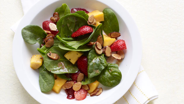 Toss this easy and healthy salad from the spinach and strawberries you’ve harvested from your garden!