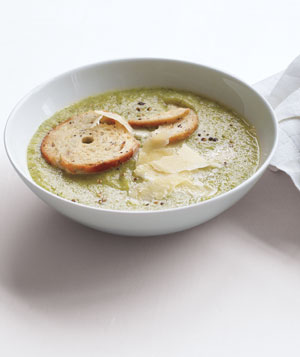 Add the broth, broccoli, potato, 2 cups water, ½ tsp salt, and ¼ tsp black pepper to the saucepan and bring to a boil. Reduce heat and simmer, covered, until the vegetables are very tender, 18 to 20 minutes.